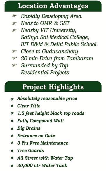 | MGM GREEN HILL Kalvoy Village, Chengalpattu Taluk, Kancheepuram District |